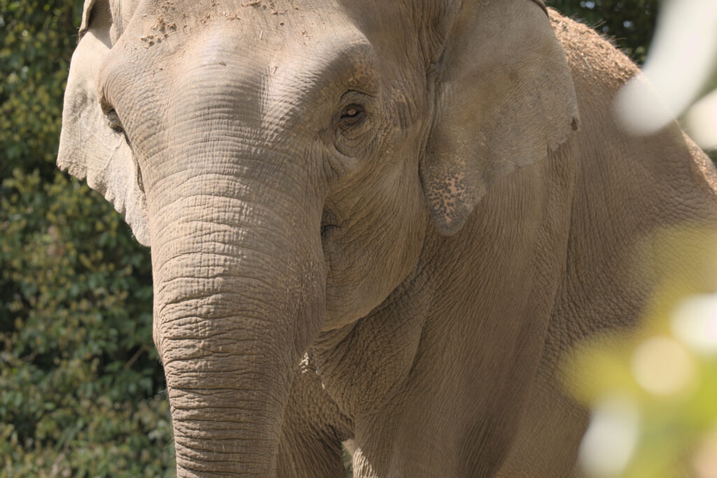アジアゾウ亜種のひとつで、主にインド北東部から南部の森林に分布。長老のメスを中心とした母系家族群を単位として行動しています。アジアゾウはアフリカゾウと比べると比較的耳が小さく、また通常メスは牙を持っておらず、オスであっても牙を持たない個体が見られるという特徴があります。