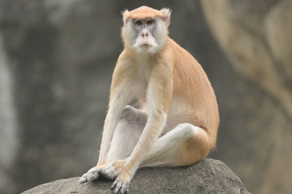 アフリカ西部から東部にかけて分布。体が細長く、四肢も長く、そして指は短いという、走ることに特化した形質を備えており、走るのが最も早い猿のひとつに挙げられます。普段は10匹程度の群れで生活しながらオスがその周辺を警戒し、天敵が現れるとメスや子供が退避するまでオスがおとりとなって相手をひきつけます。