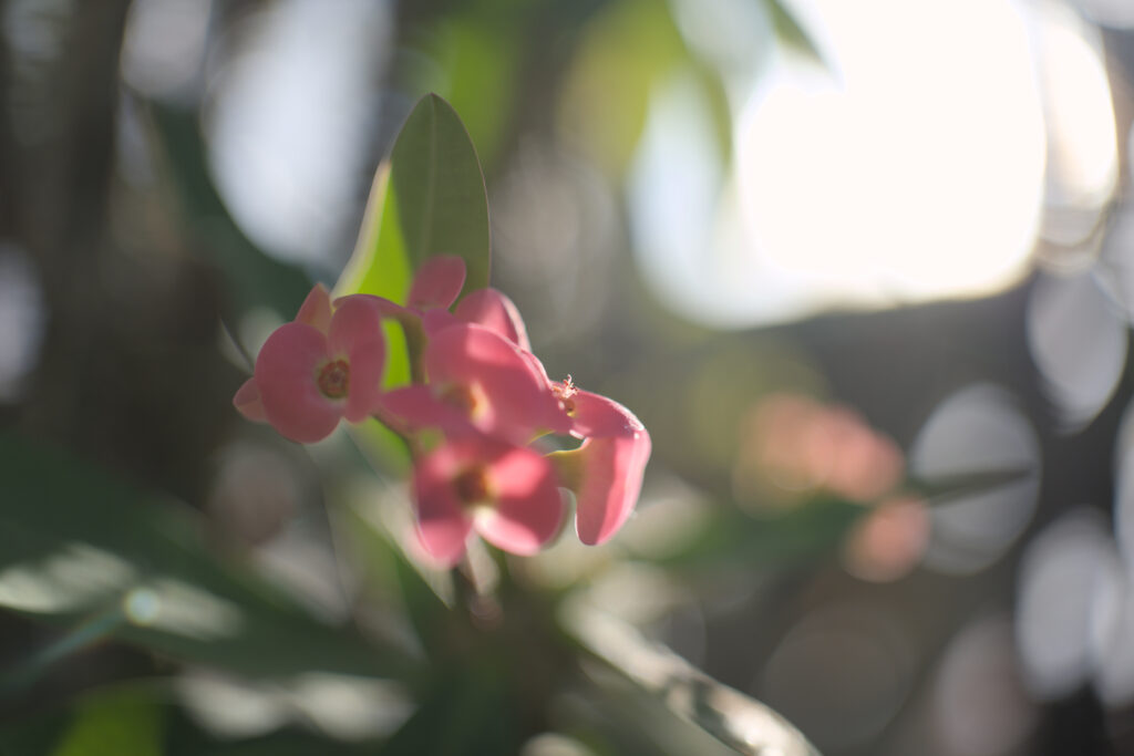 マダガスカル島原産の、高さ1〜2mほどになるつる性低木。英語・ドイツ語・フランス語のいずれにおいてもイエス・キリストが磔刑の際に被せられた茨の冠になぞらえた呼び名になっており、その名の通り茎に沿って葉の基部にある托葉からそれが変化したトゲが細かく生えており、長さは最大で3cmに及びます。さらに、葉や茎から出る樹液もほとんどの動物にとって有毒で、これらによってその多肉質の茎を草食動物から守っています。