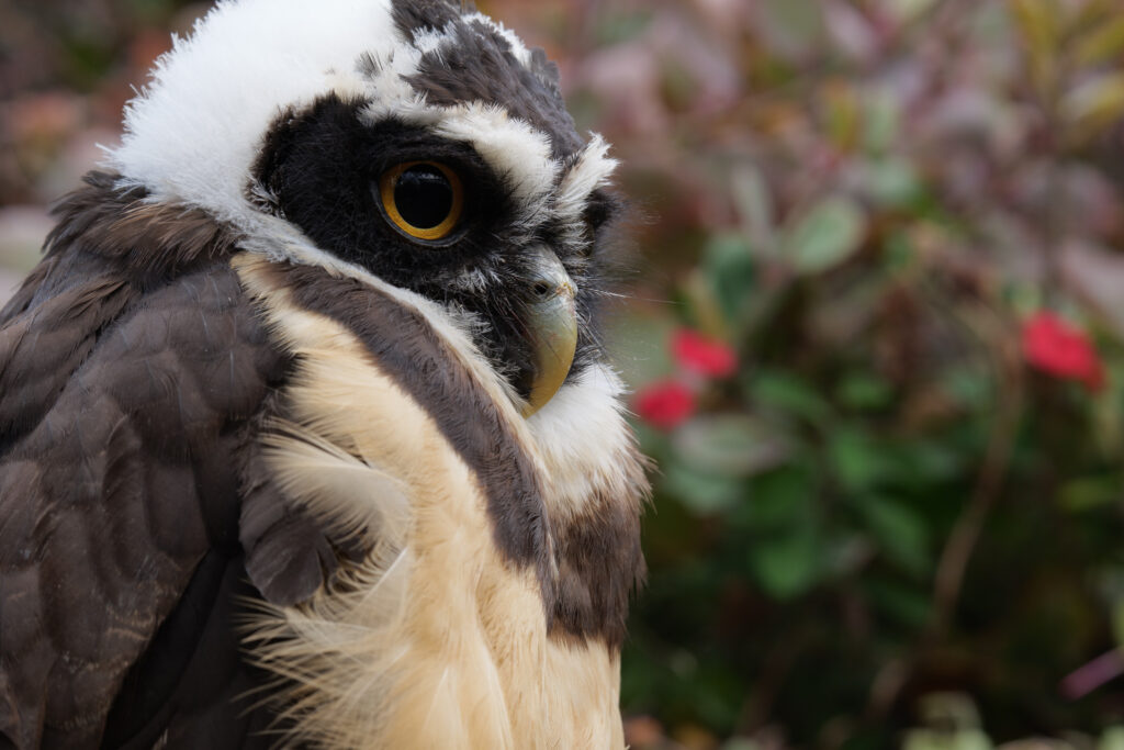 南米の熱帯雨林に広く分布するフクロウで、黄色い目の周囲に白い眼鏡をかけたように見える模様を持っています。本種は近くに水辺さえあれば森林の外縁部やコーヒー農園等にも現れることがあり、さらにある程度の高地にも順応できるなど適応力の高い種です。